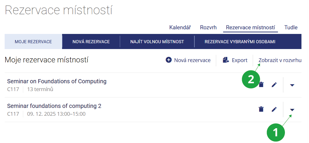 Tip: Moje rezervace v seznamu vidím, ale v rozvrhu ne. Proč?