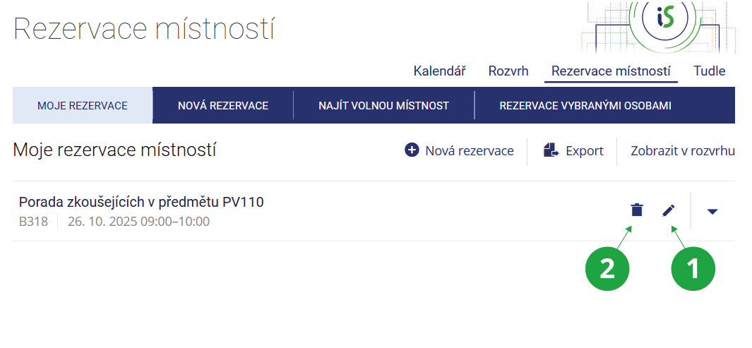• 4.Jak rezervaci místnosti upravím nebo zruším?