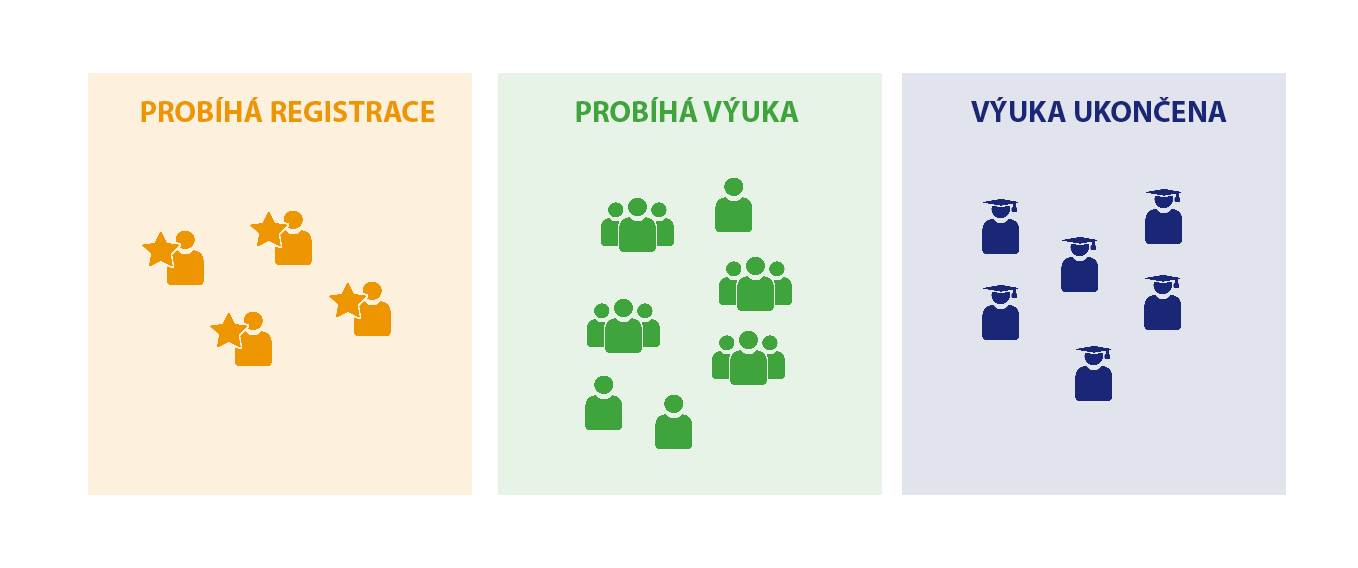 - „probíhá registrace“ (aktivní studenti), doba registrace,