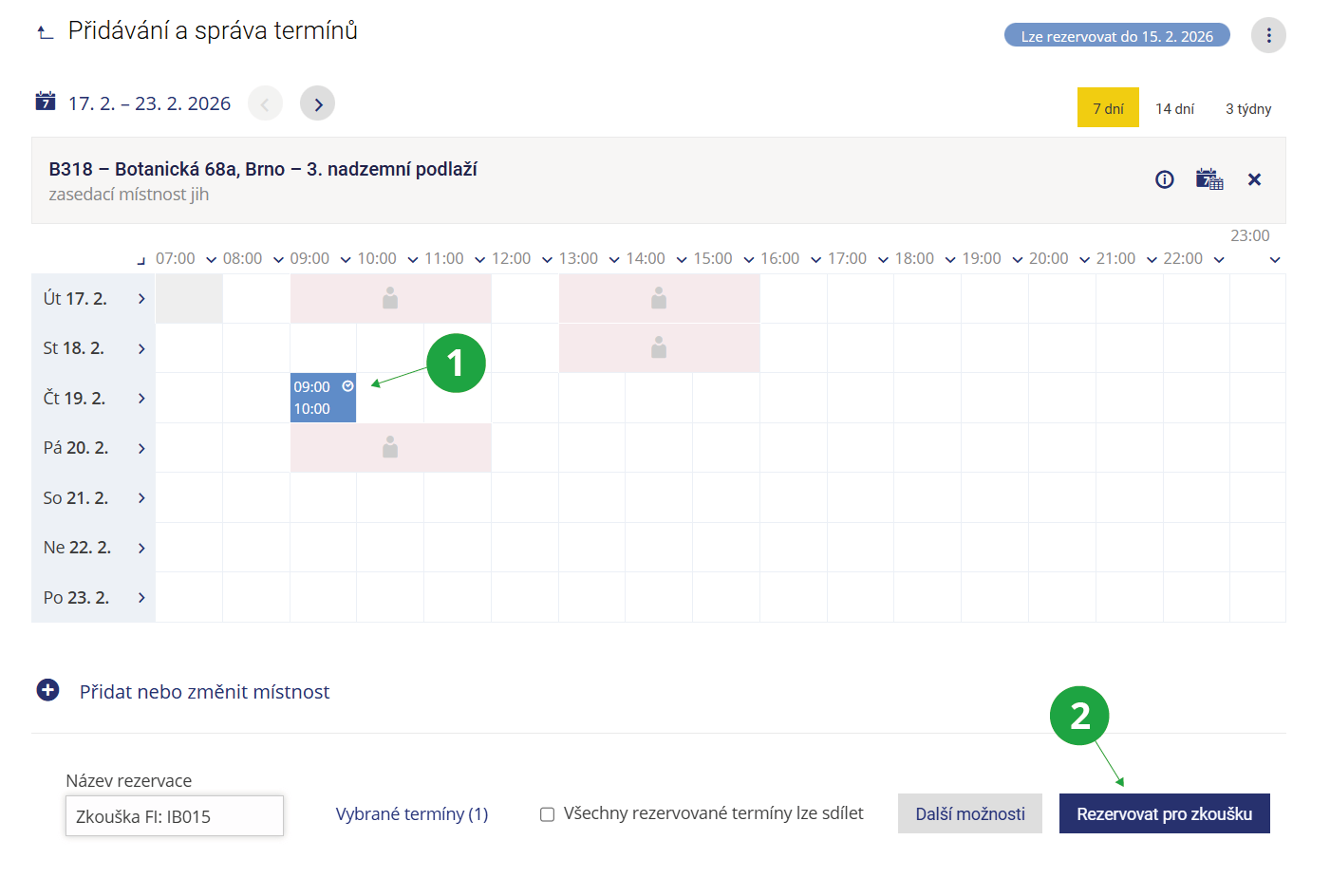 1 Učitel nejprve vybere požadovaný termín ve vybrané místnosti.